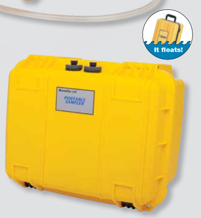 La bomba está encerrada en una carcasa amarilla de alta visibilidad para un fácil reconocimiento y recuperación en el campo. Es ideal para aplicaciones de bombeo remotas o resistentes, como muestreo de estanques y lagos en la industria forestal ó en la industria agrícola para aplicaciones como muestreo de escorrentía de alimentos. También es adecuada para su uso en laboratorios de pruebas ambientales y en cualquier lugar donde se requiera una bomba de muestreo portátil.