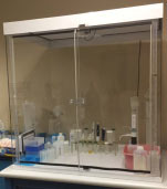 Una vez que el laboratorio de Environmental Express estuvo limpio, se requiere mantener el área de muestreo libre de contaminantes, por lo que instalamos un sistema de gabinete de sobremesa AirLite ™ sobre el inyector automático (Imagen 1). Después de recopilar nuevos datos del sistema ICP-MS, se compararon con los resultados de datos anteriores. Se notó una mejora en la calidad de los datos debido a la menor ocurrencia de picos de contaminación aleatorios. Los picos aleatorios en los datos significan que de alguna manera la muestra estaba contaminada por una fuente externa. Esta mejora impulsó la decisión de replicar el mismo concepto para el área de preparación de muestras. (Imagen 2). Se diseñó, construyó e instaló un gabinete personalizado. Ambas unidades del sistema de gabinete de sobremesa AirLite ™ contienen un filtro de aire de partículas de alta eficiencia (HEPA) a través del cual el aire es extraído por un pequeño ventilador en la parte superior de la unidad. Esto mantuvo la pureza de los estándares y evitó que se contaminarán las muestras durante su uso. Estas tres diferencias tuvieron un impacto importante en el logro de niveles de detección más bajos consistentes.