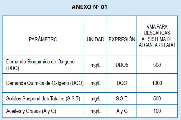 Actualmente rigen en Perú los VALORES MÁXIMOS ADMISIBLES DE LAS DESCARGAS DE AGUAS RESIDUALES NO DOMESTICAS de acuerdo al DS N° 010-2019- VIVIENDA