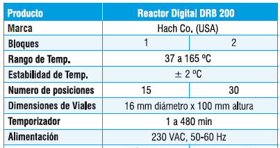 Los reactivos para la solución de digestión y el ácido sulfúrico y el catalizador serán adquiridos por el usuario y deberán ser elaborados siguiendo las indicaciones de la NTP , SMWW .