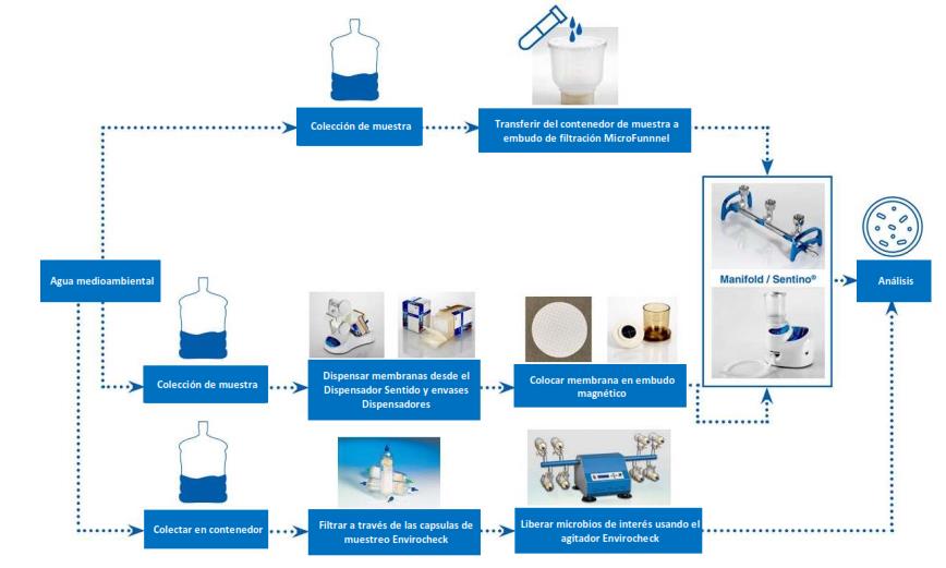 Flujo de trabajo de Pall para el control de calidad microbiológico en el medio ambiente