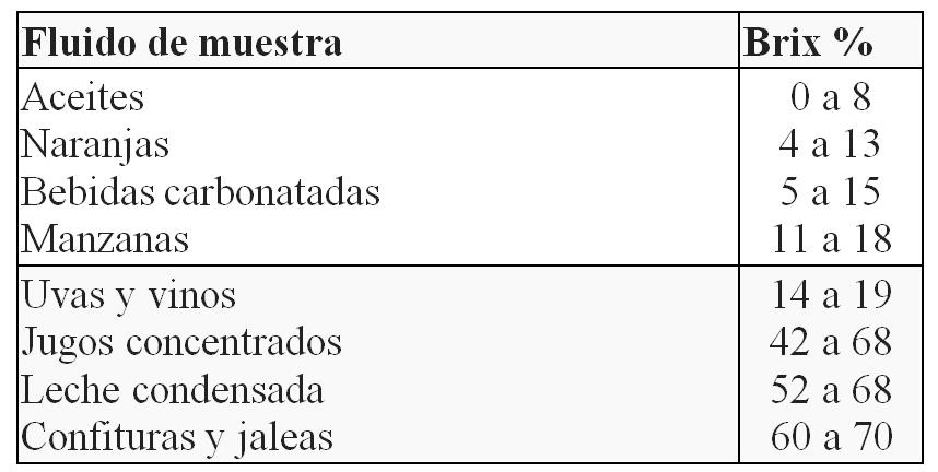 La escala Brix está calibrada al número de gramos de azúcar de caña contenidos en 100 mL de agua. Por lo tanto, la lectura del % Brix es igual a la concentración real de azúcar.