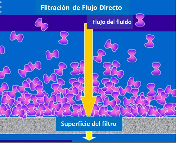Para concentrarnos en el flujo directo, tenemos que empezar definiendo la filtración. La filtración es un proceso por el cual se pasa un fluido por un material permeable, con el objetivo de eliminar partículas indeseables. Hay diferentes tipos de filtración, entre las que se encuentran: filtración convencional dead-end, filtración profunda, filtración de flujo tangencial, ultrafiltración, etc.