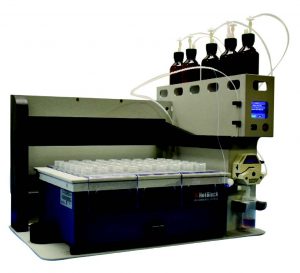 La estación de llenado AutoBlock puede contener hasta cuatro reactivos de digestión separados además del agua reactiva utilizada para el enjuague. Debido a que la digestión se puede realizar mientras la unidad HotBlock está en la estación de llenado de AutoBlock, la estación de llenado de AutoBlock fue diseñada para que quepa dentro de la mayoría de las campanas de humos de tamaño estándar. Si el espacio de la campana es limitado, hay un gabinete ventilado disponible para colocar sobre la unidad y conectarlo al sistema de ventilación de la campana. El software incluido permite al usuario definir los métodos de digestión deseados en una PC o computadora portátil sin estar conectado a la unidad y luego descargar los métodos a la unidad. Una vez que se definen los métodos, se pueden establecer las posiciones de muestra y el método se puede elegir a través de una pantalla táctil integrada sin necesidad de tener conectada la computadora de control.