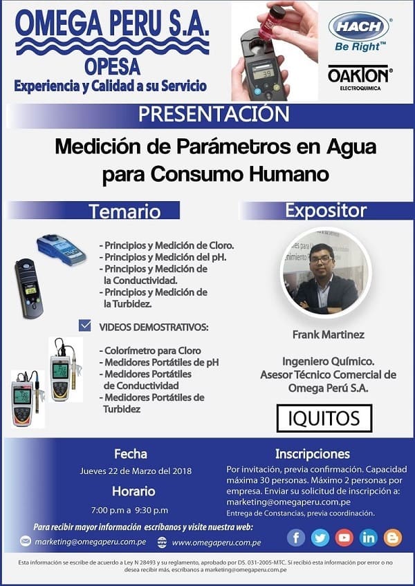 Medición de Parámetros en Agua para Consumo Humano – 22 de marzo