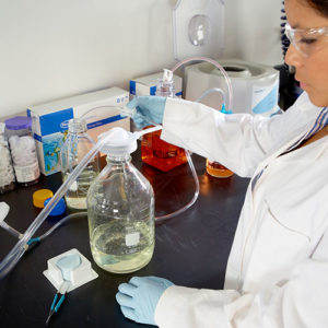 Pero cuando pensamos en análisis que no están especificados para un determinado tipo de material, los laboratorios deben considerar la solución de la muestra y si el filtro es compatible con lo que están tratando de procesar y analizar. La polaridad del solvente ayudará a determinar si se necesita un filtro hidrofílico (p. Ej., PTFE) para elementos como solventes orgánicos o un filtro hidrofílico (p. Ej., Nylon, PVDF o PES) para soluciones acuosas. También se debe de considerar el rango de pH y cuáles membranas son compatibles con qué pH.