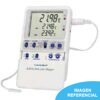 Supervise fácilmente las temperaturas durante la noche o durante cualquier período de tiempo: las temperaturas máximas y mínimas se almacenan hasta que se borra la memoria. Configure alarmas altas y bajas en incrementos de 1 °; La alarma suena cuando la temperatura sube por encima o cae por debajo de los puntos de ajuste. La función de seguimiento de alarmas almacena datos para hasta 10 eventos de alarma diferentes que detallan cuándo ocurrió el estado de alarma, así como cuándo la unidad regresó dentro del rango. El indicador de estado de alarma incluye LED visuales, alertas de audio y segmentos LCD parpadeantes.