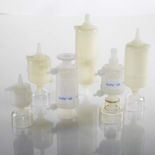 • Cápsulas: las cápsulas filtrantes son adecuadas para aplicaciones de prefiltración y esterilidad. Están disponibles con una variedad de membranas para eliminar la contaminación por partículas, clarificar soluciones y esterilizar soluciones líquidas antes de su posterior procesamiento. La filtración estéril a través de las cápsulas de filtro AcroPak, que están disponibles con membranas Supor(R) (PES) y Fluorodyne II (PVDF) y ofrecen una gran EFA (área efectiva de filtración) y PF (prefiltro) para maximizar el rendimiento y el caudal.