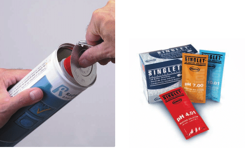 Las bolsitas proporcionan un buffer fresco para cada nueva calibración.