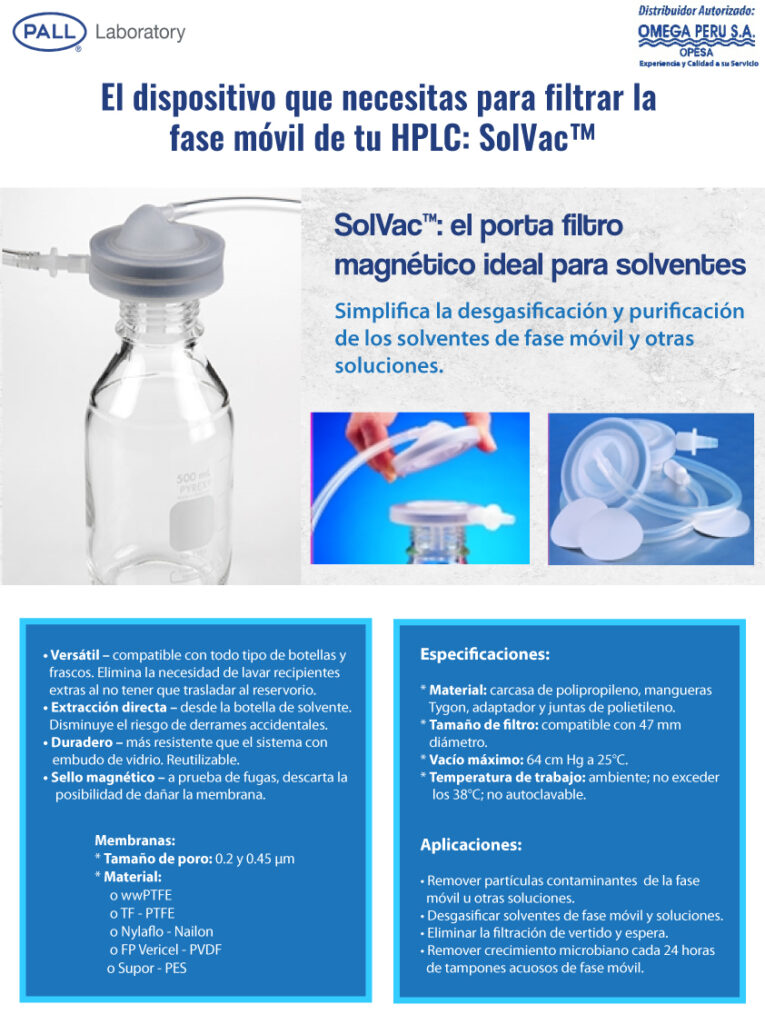 Conoce más acerca del dispositivo de filtración Solvac y otros suministros necesarios para la filtración de Solventes a continuación:
